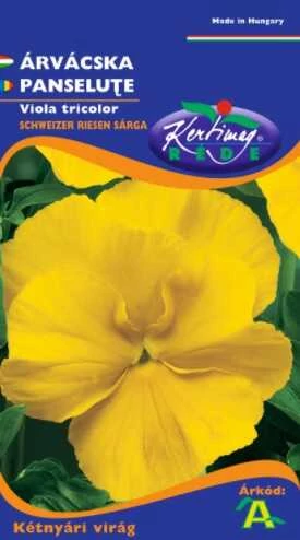 Nem csávázott vetőmag. (Viola wittrockiana) Európában, Közép-Ázsiában őshonos violák kereszteződésével előállított kerti virágzó. Nálunk kétnyári virágzónak számít, jól tűri a kora tavaszi és ősz végi hidegeket. Amennyiben éjszaka kisebb fagyok érik, a virágok kissé lekókadnak, de a napsütés hamar életre kelti a kissé "fázós" szirmokat. Éppen ezért az egyik legkorábbi balkondíszünk. Virágágyak, balkonládák, kőedények kedvelt virágzója. Gyakran ültetik vegyesen más virágokkal összeültetve, akár vegyes színkombinációban. Színvariációban szinte megszámlálhatatlan fajtával találkozhatunk. A vidám citromsárgától kezdve az élénk kéken át a ragyogó pirosig, a szemes változattól a halvány egyszínűig szinte minden színben gyönyörködhetünk tavasszal és ősszel is. A forró nyári napokat nem viseli jól, árnyékosabb kertrészben azonban akár egészen május végéig hozza újabb és újabb virágait. Nem túl igényes növény, de minél tápdúsabb talajba ültetjük, annál szebben virágzik majd. Vízigényes növény, de a pangó vizet kerüljük!