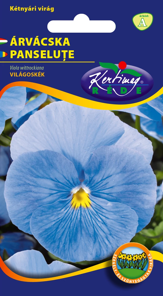 Árvácska Óriásvirágú - Világoskék - Rédei Kertimag Nem csávázott vetőmag. (Viola wittrockiana) Európában, Közép-Ázsiában őshonos violák kereszteződésével előállított kerti virágzó. Nálunk kétnyári virágzónak számít, jól tűri a kora tavaszi és ősz végi hidegeket. Amennyiben éjszaka kisebb fagyok érik, a virágok kissé lekókadnak, de a napsütés hamar életre kelti a kissé "fázós" szirmokat. Éppen ezért az egyik legkorábbi balkondíszünk. Virágágyak, balkonládák, kőedények kedvelt virágzója. Gyakran ültetik vegyesen más virágokkal összeültetve, akár vegyes színkombinációban. Színvariációban szinte megszámlálhatatlan fajtával találkozhatunk. A vidám citromsárgától kezdve az élénk kéken át a ragyogó pirosig, a szemes változattól a halvány egyszínűig szinte minden színben gyönyörködhetünk tavasszal és ősszel is. A forró nyári napokat nem viseli jól, árnyékosabb kertrészben azonban akár egészen május végéig hozza újabb és újabb virágait. Nem túl igényes növény, de minél tápdúsabb talajba ültetjük, annál szebben virágzik majd. Vízigényes növény, de a pangó vizet kerüljük!