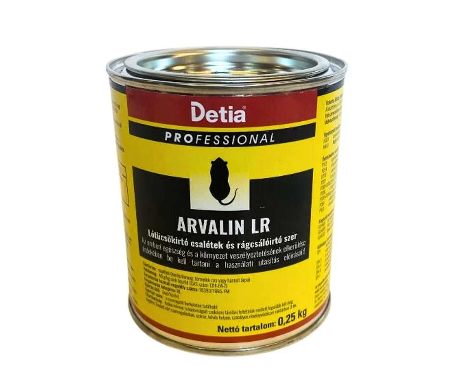 Használat: A talált járatokban kell beleszórni a csalétket, késő délután, vagy alkonyatkor a nyirtkos talajra, majd a nyílást azonnal be kell taposni. 8-10 nap után érdemes a kijuttatást megismételni, a biztos hatás eléérése érdekében. Fontos, hogy az Arvalin LR - lótücsök és rágcsálóirtó szer felszíni használatra nem alkalmas, egyedül a járatokban fejti ki hatását és a kezelt területre a szórást követően 14 napig állatokat engedni nem ajánlott, a szerben található cink-foszfid hatóanyag miatt. Adagolás: 2-3 szem / járat, a járat nyílásába helyezve. (6-15g / 100 m2)
