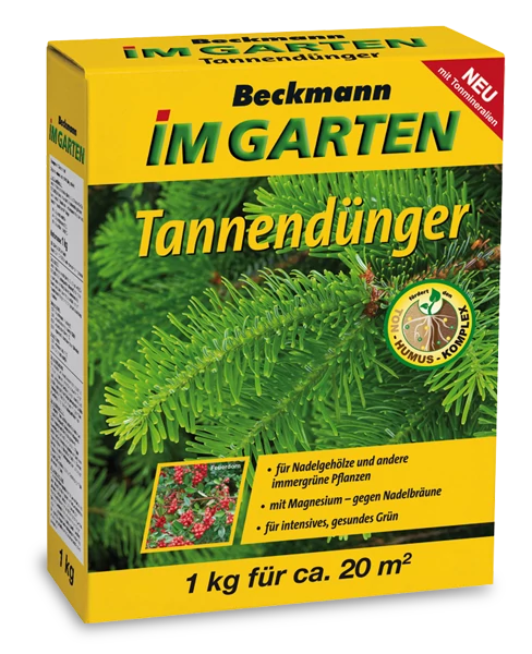 Az egészséges talaj és a Beckmann szerves-ásványi növénytáp fenyőfélékhez és egyéb örökzöldekhez segíti a tűlevelű és örökzöld növények természetes és dús növekedését. Az összes fontos fő tápanyagot, természetesen kötött nyomelemeket és magnéziumot tartalmazó speciális fenyőtáp a tűlevélelhalás ellen is hat. Magas magnéziumtartalom segítségével hat a tűlevelek barna elszíneződése ellen