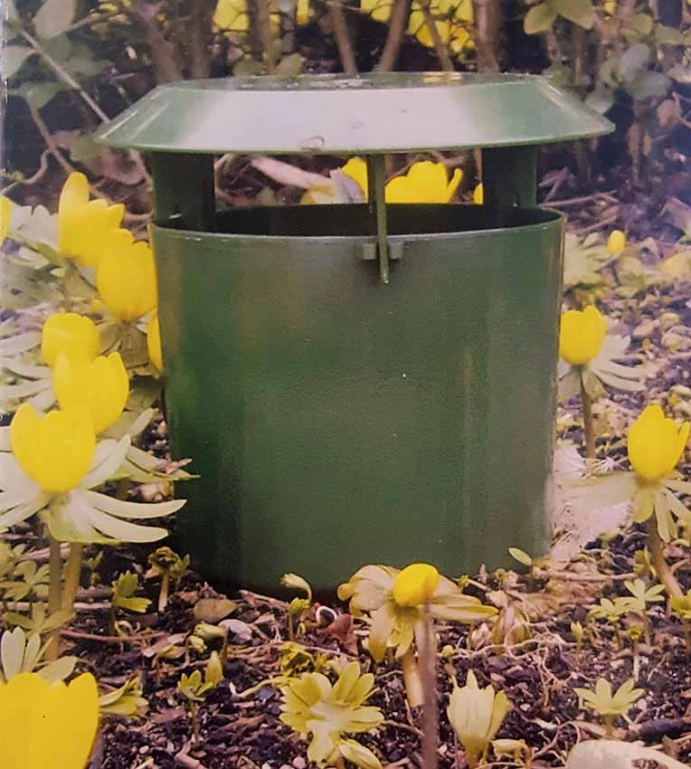 NATUREN BIO csigacsapda 2db-os A csomag tartalma 2db földbe ásható, zöld színű, műanyag csigacsapda. Hatékony mechanikai, vegyszermentes védelem a csigák ellen. praktikus, nem csúfítja el a kertet, beleolvad a környezetbe. A praktikus tetőnek köszönhetően nem látszódnak az elpusztult csigák. Használata: Helyezze le a földbe a dobozkát úgy, hogy a bejárata egy szintben legyen a talajjal. Töltsön a csigacsapdába folyadékot, vagy sört, és adjon hozzá pár csepp csigacsalétket! Helyezza csigacsapdára a fedelet! A csapda reggelre hatékonyan összegyűjti a közelben garázdálkodó csigákat. Azok belemásznak, de nem tudnak kimászni belőle, és megfulladnak. ajánlatos 2 naponta eltávolítani az elpusztult állatokat a csigacsapdából. A termék méretei: 11,5 cm magas és 11 cm az átmérője.