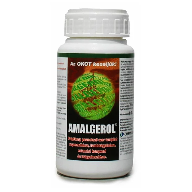 [PRODUCT] - A fekete gyémánt - Biotemesztésben engedélyezett, természetes alapanyagú,  a talajéletet helyreállító, folyékony  növény- és talajkondícionáló készítmény. Felhasználható talajkezelésre, levéltrágyázásra szántóföldi- és kertészeti kultúrákban. Alapanyagai: főként algakivonatból, növényi és állati olajokból, ásványi anyagok, növényi kivonatok, gyógynövénykivonatokból, esszenciákból áll. Több, mint 70 évvel ezelőtt egy svájci vegyész fejlesztette ki, neki köszönhetjük ennek a csodálatos készítménynek az ismeretét. Az Amalgerol a talajlakó hasznos baktériumok számára egy könnyen emészhető szénforrás.
