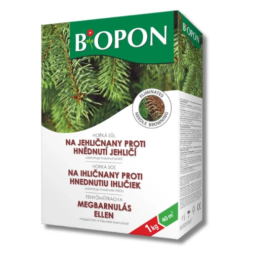 Kiszerelés: 1kg. Védelem és erőteljes zöld növekedés! Megmenthetők a sárguló, barnuló fenyők! Ha észrevetted, hogy a tűlevelűid elvesztik élénkzöld színüket, ne várj tovább! A BIOPON barnulás elleni fenyő- és tűlevelű táp kifejezetten a tápanyaghiány és környezeti stressz okozta színvesztés ellen lett kifejlesztve. Magas magnézium- és vastartalmának köszönhetően a növények színe egészséges és intenzív marad. Segít megelőzni és megszüntetni a tápanyaghiány okozta tűlevélszíneződést. Erős gyökérrendszert, dús lombozatot eredményez. Hozzájárul a fenyők és tűlevelűek ellenállóbbá tételéhez, segítve a hosszú távú egészséges fejlődést. Gyorsan oldódó, könnyen kijuttatható granulátumban. Minden tűlevelű növényhez ideális, emellett tuják, ciprusok és egyéb örökzöldek számára is jó választás. Hozzáadott 15% magnézium, 28% kén tartalommal.