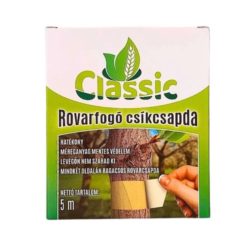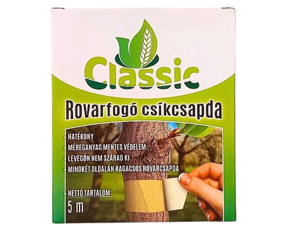 Classic csíkcsapda 5m A Classic ragacsos csíkcsapda különösen hatékony szer a mászó rovarok irtására, méreganyag alkalmazása nélkül. A fa törzsére szorosan ráragasztott csíkcsapda felületére a különböző rovarok ráragadnak, így nem tudnak tovább ártani kertünknek. Mikor a szalag megtelt rovarokkal, szedjük le a fáról és égessükk el. Kertészetben, gyümölcsösökben és erdőkben is használható. A gyártástól számított 5 évig felhasználható.