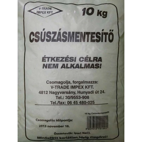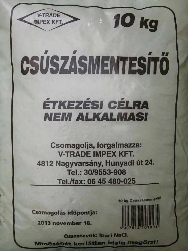 Jég, hó olvasztására. Aszfaltozott nagyobb területeken, parkoló, udvar, kocsifelhajtó, meredek útszakaszok, járdák, ahol nincs a közelben növényzet, nem közlekedik ott háziállat.