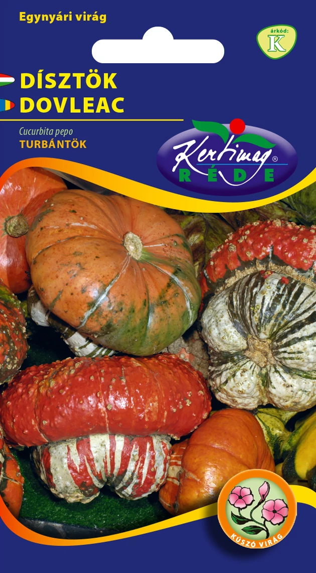 Dísztök - Turbántök - Rédei Kertimag Egynyári kúszónövény, kerítésre, falak elé helyezett rácsokra futtatható, igen mutatós vegyes dísztök fajta. Jellegzetes színes termései ősszel szedhetők, kiszárítva dekoratív, szép díszei az őszi lakásnak, kertnek, balkonnak.Napos, meleg helyre, jó vízgazdálkodású, tápanyagban dús talajba ültessük!