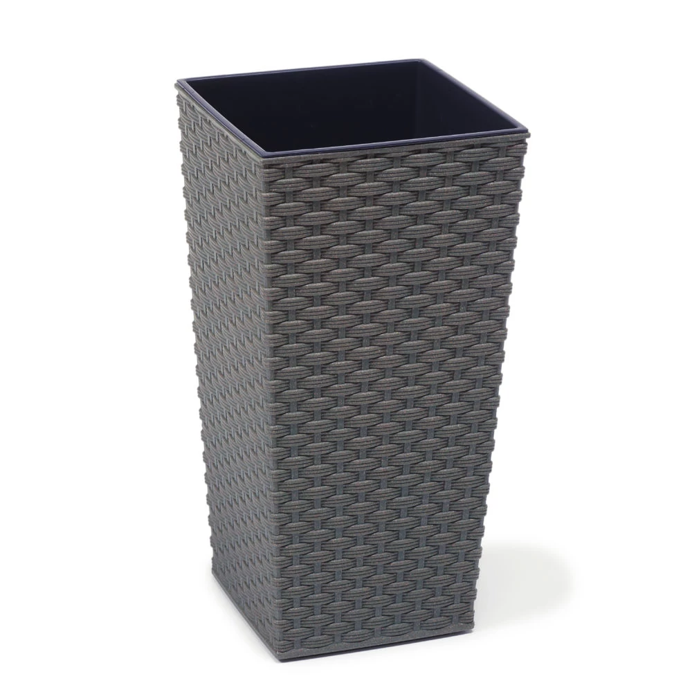Finezja Rattan magas kaspó 25x46cm - antracit Dekoratív, elegáns magasított kaspó lakásba, irodába, teraszra, meleg hangulatú, fonott, rattan felülettel. Kiemelhető betéttel láttuk el a könnyű kezelhetőség érdekében. Erős, rugalmas műanyagból készült, többféle színben és méretben is választható. A magas Finezja Rattan magas kaspó 25x46cm - antracit kaspóval a szobanövények, vagy virágos balkonnövények igazán hangulatossá varázsolják a lakást vagy az erkélyt. A bejárati ajtó előtt hazaérkezve máris vidáman köszönthet bennünket egy virágos beültetés, vagy karácsonykor egy elegáns örökzöld összeültetés. A kaspó alja nem lyukas a padlóburkolat védelme érdekében. Ültetéskor a kiemelhető betét aljára érdemes agyaggranulátumot tenni, hogy felszívja a feleslegesen pangó vizet! A növény gyökere így megfelelően tud lélegezni. Gyökéritatóval a növények még szebbek, és egészségesebbek lesznek.