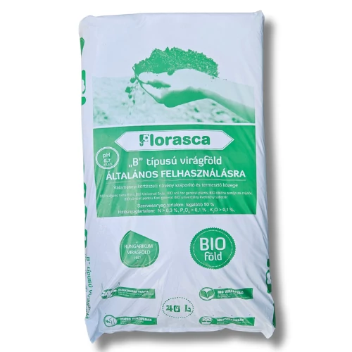 A termék 100% MAGYAR alapanyagból készül, MAGYAR csomagolóanyagban kerül forgalomba. Minden munkafolyamatot MAGYAR szakemberek végeznek. A Florasca termékek 2011-ben BIO minősítést szereztek, mára pedig megkapták a Hungarikum minősítést. A Florasca Általános BIO virágföld egyesíti magában a gondosan osztályozott Fertő-Hanság Nemzeti Parkból származó tőzeg és az évek alatt komposztálódott szarvasmarha trágya jótékony hatását. Laza szerkezetű, barna színű, szagmentes minőségi földkeverék. Univerzálisan használható kis és közepes tápigényű növényi kultúrák ültetéséshez, neveléséhez. Összetétele: Sphagnum tőzeg (kis- és közepes méretűre aprítva), biohumusz, agyag, NPK trágya, folyami homok. Az ebbe ültetett növények erőteljesen fejlődnek, dús virágzatot nevelnek. 40 literes kiszerelés. Általános használatra javasoljuk.