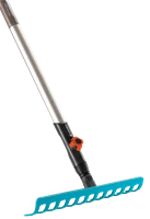 Gardena combiSystem Gereblye Nyéllel Sokoldalú kerti szerszám talaj egyengetéséhez, gereblyézéshez, talajműveléshez. Munkaszélessége 30cm. Könnyű, kényelmes vele dolgozni. 12 kiváló minőségi acélból, korrózióálló bevonattal ellátott foggal a hosszú élettartam érdekében. A terméket 130cm hosszú nyéllel együtt szállítjuk.