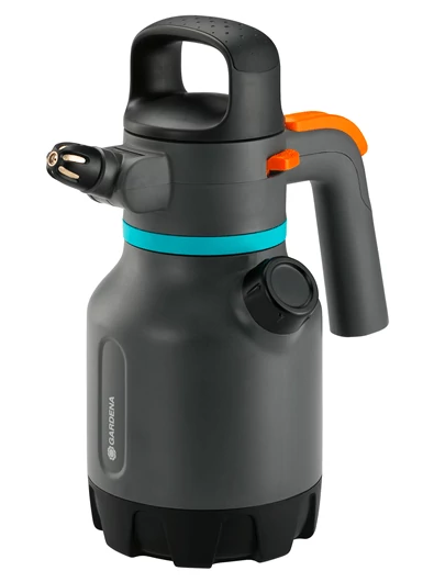 Gardena kézi nyomáspermetező 1,25l ÁLLÍTHATÓ FÚVÓKÁVAL Kényelmes kézi nyomáspermetező növényápoláshoz. Párásításhoz, tápoldatozáshoz, vagy növényvédő szer kijuttatáshoz javasoljuk kisebb kertekhez, alacsonyabb bokrok, veteményes, virágágyás ápolásához. A nagy betöltőnyílásnak köszönhetően egyszerűen feltölthető. Max. üzemi nyomás 3bar. Stabil műanyag konstrukció töltöttségi szint jelzővel, nagy betöltő nyílással, fokozatmentesen állítható szórófejjel, biztonsági túlnyomásszeleppel. A kényelmes pumpás markolatal öröm lesz a kerti munka. A beépített szűrő a szívócsőben biztosítja, hogy ne tömődjön el a permetező. Kiváló minőségű műanyag fúvóka hosszú élettartammal. 75-450m2-nyi terület beöntözésére alkalmas