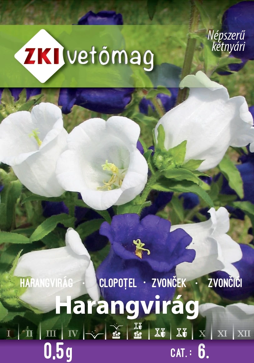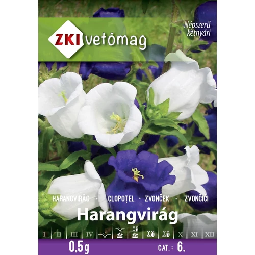 Harangvirág színkeverék Campanula medium. A csomag 0,5g vetőmagot tartalmaz. Hatásos színfoltot adó, több éves virágágyi növény. Vágott virágként tartósan díszít. Tápanyagban gazdag talajt kedveli. Télen ajánlatos takarással a fagy ellen védeni.