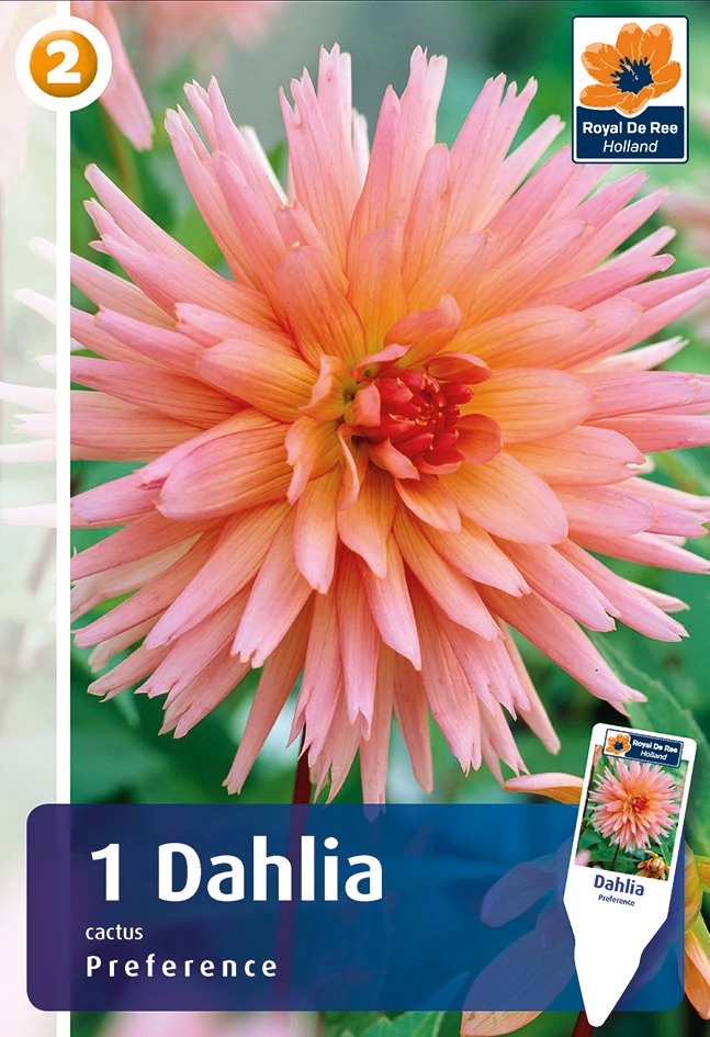 Drámai forma, különleges megjelenés. A Preference kaktusz dália különleges, keskeny, hegyesen visszahajló szirmaival igazán karakteres megjelenést kölcsönöz a kertnek. Nagyméretű, látványos virágai egész nyáron át díszítenek, és garantáltan a virágágyás központi elemei lesznek. Elegáns formája miatt vágott virágnak is rendkívül népszerű. Ha igazán különleges, formabontó dáliát keresel, a kaktusz típus tökéletes választás. Ez a 90 cm magasra növő, mutatós nagyvirágú, hosszú, erős szálú dália kiválóan alkalmas vágott virágnak. Rendszeresen vágva vagy az elnyílott virágokat eltávolítva új és új virágszárakat fejleszt, így júliustól a fagyokig folyamatosan virágzik. A tavaszi fagyok elmúltával, április közepétől ültethető a kert naposabb részébe. Az igazán gazdag virágzáshoz rendszeres, bőséges víz- és tápanyagellátást igényel. Nem télálló növény, fagymentes helyen teleltesd!