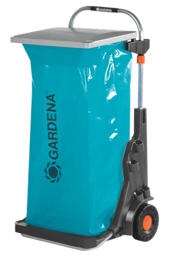 Gardena kerti Kocsi Kerti hulladékok és szemét kényelmes összegyűjtéséhez és eltávolításához. Erős fémkerettel, rozsdamentes anyagból, praktikus, stabil kerekekkel. 70 kg-ig terhelhető. Állítható magasságú, és levehető zsáktartóval. Kereskedelemben kapható egyszerű hulladékgyűjtő zsák is ráhelyezhető. Egymás mellett 2 zsák is rögzíthető, így nagyobb mennyiségű kerti hulladék gyűjtésénél (pl. fűnyírás) nem kell többször fordulni a hosszabb távokon. Két Combisystem nyél és kisszerszám is rögzíthető rá a kényelmesebb kertápolás végett. Nagy, stabil kerekek gyepkímélő speciális bordázattal, rozsdamentes anyagból. A praktikus fedél nem csupán a megázástól és a kellemetlen szagok kijutásától véd - szemétlapátként is használható.