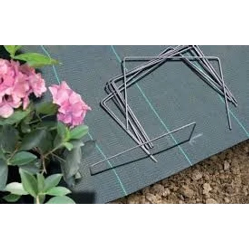 Nagyon praktikus fém leszúró tüskék talajtakaró szövetek, geotextíliák, vagy vakondháló rögzítéséhez. Gyorsan, könnyen, precízen rögzíthetjük vele a talajtakarót fém hajlítgatás és egyéb időigényes kerti munkálatok nélkül. Biztonsággal, erősen, stabilan tartja a talajtakarót a helyén, a szél nem tépi fel olyan könnyedén. Gyors, hatékony munka kis befektetéssel.