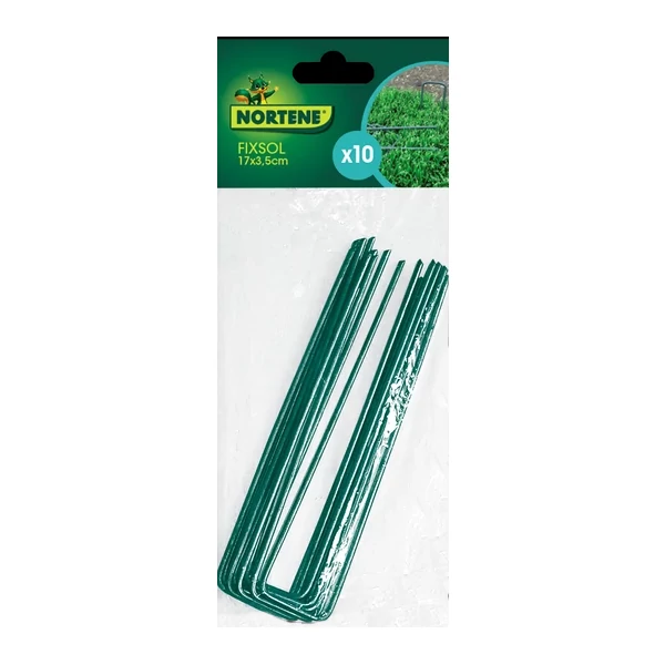 Nortene FIXSOL fém leszúró tüske talajtakarókhoz 10db ZÖLD – Stabil rögzítés, maximális tartósság. A Nortene FIXSOL fém leszúró tüske az a kerti kiegészítő, amire mindig számíthatsz, ha megbízható és tartós rögzítésre van szükséged. Legyen szó árnyékoló hálók, geotextíliák, mulcsfóliák vagy vakondhálók rögzítéséről, ez a strapabíró fém tüske garantáltan a helyén tart mindent, még a szeles időben is.