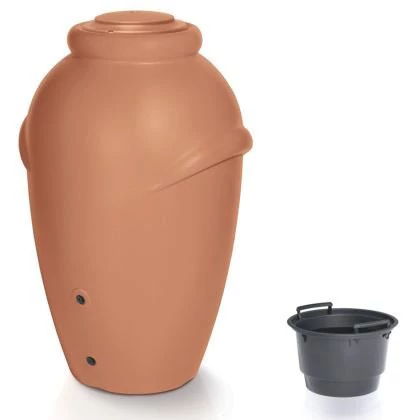 Szín: terrakotta. Télre az esőgyűjtő tartalmát engedd le, nehogy a megfagyott víz szétfeszítse a műanyagot! A csapot hagyd nyitva télire! A csap nem tartozék!