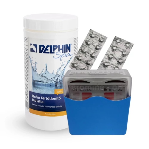 A csomag tartalma: 1kg 200g-os Delphin SPA Bróm tabletta + 1 doboz tablettás Bróm és pH mérő teszter + 2 levél (20db) Bróm és pH mérő DPD1 tabletta. Együtt olcsóbb!