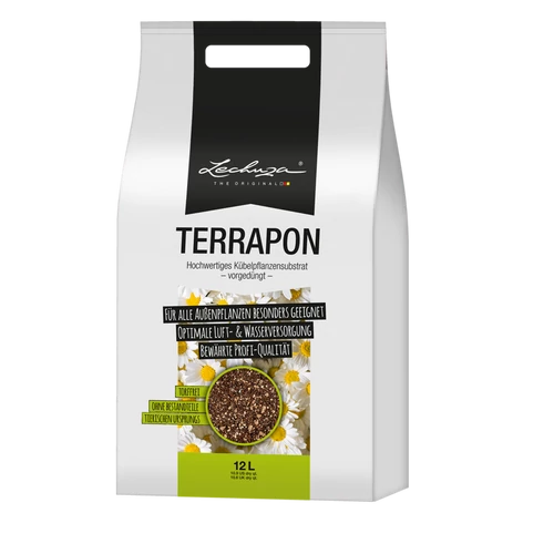 A Lechuza Terrapon ültetőközeg tápanyaggal 12 liter egy humusszal ellátott ásványi ültetőközeg szobanövények, balkonnövények és cserepes növények számára. Összetétele: humusz, horzsakő, zeolit és láva. A növényeket 6-12 hónapon át látja el tápanyaggal. A lassú feltáródású műtrágyának köszönhetően a növényt nem égeti, és egyenletesen látja el a szükséges tápanyagokkal.