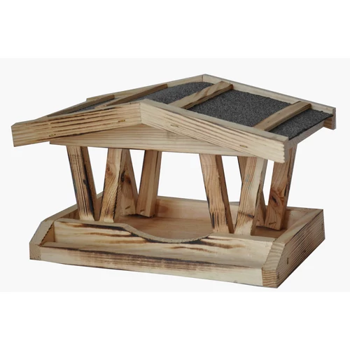 Egyszerű, dekoratív madáretető fenyőből, zsindely tetővel. Ötletes kialakításának köszönhetően mi is belátunk az etetőbe, így gyönönyörködhetünk a kis madarakban, miközben vígan csemegéznek kertünkben. A praktikus, széles tető megvédi a magkeveréket a téli csapadéktól, és a madaraknak is védelmet nyújt a hideg hó és az ónos eső ellen. Hosszabb élettartam: a zsindely tető megvédi a madáretetőt a csapadéktól. Természetes: a madarak számára is természetes, fa anyagból készült. Fára akasztható, vagy fatönkre is rögzíthető.