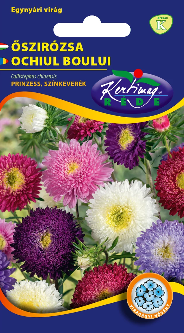 Őszirózsa Prinzess - Színkeverék - Rédei Kertimag Nem csávázott vetőmag. Őszirózsa (Callistephus chinensis) Az őszirózsa Kínából származó növény, a Princess változata magyar nemesítés. 70-100 cm magas, nagy virágú, igen erős szárú, ősszel virágzó, nagy fejű virágzó. Virágágyásba és vágott virágnak ajánljuk. 2-3 hétig virágzik, napos helyet, laza, tápanyagban gazdag talajt kedvel. Vízigényes, mindenképpen jó vízgazdálkodású talajba ültesse! Fuzáriumra érzékeny fajta, ezért javasoljuk,, hogy csak 3-4 évente ültesse ugyanarra a helyre! Az őszi hidegeket jól tűri, ezért igen kedvelt őszi virágzónk.