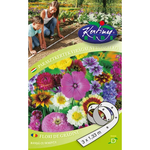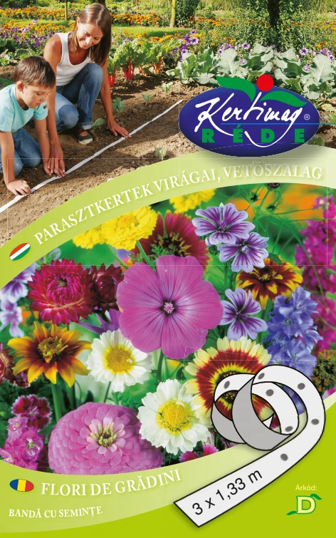 Parasztkertek Virágai MAGSZALAG - Rédei Kertimag Romantikus, színpompás virágágyások létrehozására. A legegyszerűbben ültethető virágoskert - ami nem csak díszít, de a beporzókért is sokat tesz! Körülbelül 100 cm magasra megnövő, egynyári virágmagkeverék (rézvirág, madármályva, szarkaláb, őszirózsa, kínai szegfű stb.). Gazdagon virágzik július elejétől a fagyokig. Vágott virágként színes csokrokban is szépen díszít. A vetőmagszalag segítségével gyors, egyszerű és kényelmes a veteményezés, a növények jobban fejlődnek, a felhasznált környezetbarát papír pedig lebomlik a talajban.