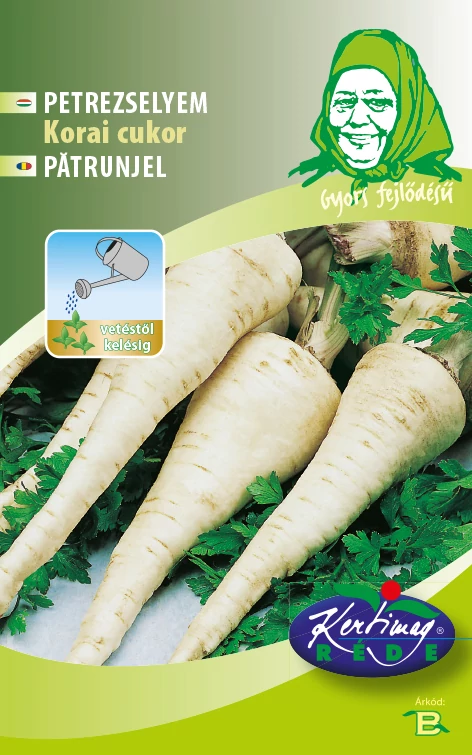 Petrezselyem - Korai cukor - Rédei Kertimag Lisztharmattal szemben ellenálló, krémfehér színű, 14-17cm hosszú, elkeskenyedő gyökerű petrezselyem. Erős, sötétzöld levélzetű fajta. Friss fogyasztásra és tárolásra is javasoljuk. A csomag 5g, azaz kb 3500db Vetőmagot tartalmaz.