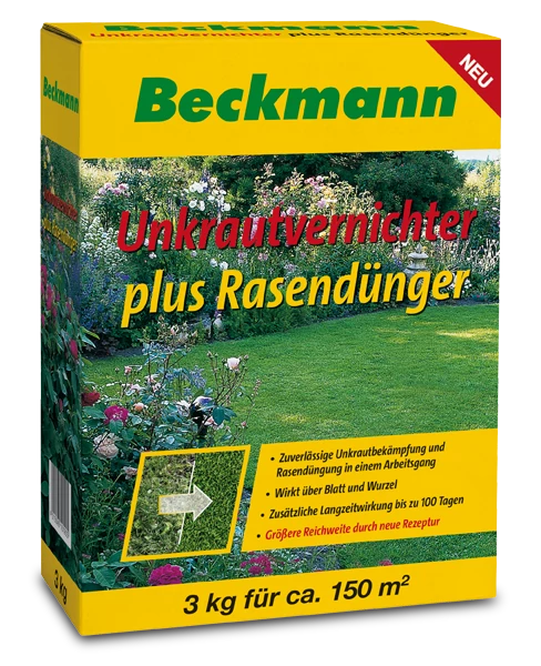 Felhasználása: A Beckmann gyomirtós gyeptrágya a teljes vegetációs periódus ideje alatt használható (áprilistól szeptemberig) kivéve a fű telepítését követő 6 hónapot. A füvek számára kedvező körülmények esetén használja, azaz, amikor a hőmérséklet és a vízellátottság optimális a növekedés szempontjából. Ne használja száraz, rendkívül meleg időjárás esetén, illetve, amikor a talajhőmérséklet 8 - 10 °C alá süllyed. Szezononként egy kezelés alkalmazása javasolt.