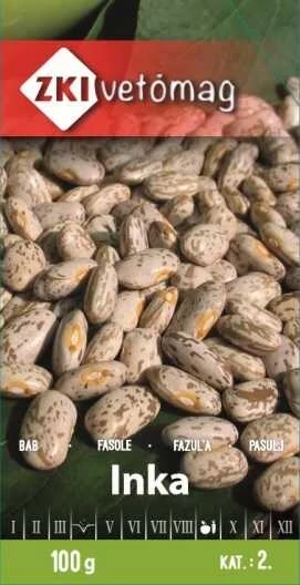 Szárazbab - Inka - ZKI Hossza 7-10 cm, benne 4-6 mag fejlődik. A mag halvány drapp alapon barna márványozottságú. Tenyészideje 115 nap. Jó termőképességű fajta. Szárazbabként és kifejtőbabként is felhasználható.