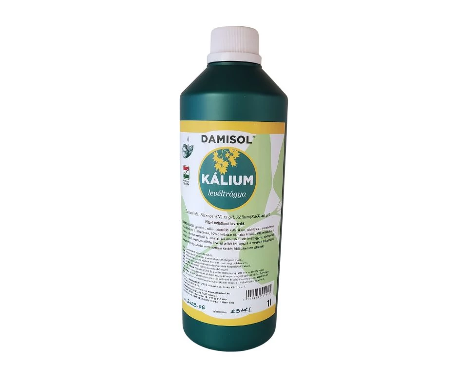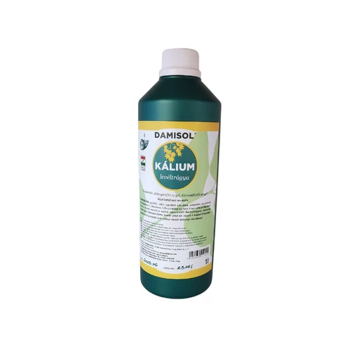 Damisol K Kálium tápoldat 1L  A kálium a növények vízháztartásának szabályozásán keresztül csökkenti a párologtatást, ezzel egyidőben növeli a gyökerekvízfelvevő képességét. Virágzás közben is érdemes kijuttatni, ezzel hosszabbítva az állapotot. Ízletesebb, édesebb és fokozottabb termésképződést idéz elő. A Damisol K Kálium tápoldat 1L kíméli a növényeket, egyenletes tápanyagfelvételt biztosít, levéltrágyázásra, vagy hiánybetegségek kezelésére, gyógyításra használható, nem hagy foltot a növény levelén, növényvédő szerekkel együtt is alkalmazható. Magas káliumtartalmú kelátképzővel ellátott tápoldat, ami annyit jelent, hogy könnyen szívódik be a növénybe, így a káliumhiány, gyakran nehezen, vagy későn észrevehető tüneteit is gyorsan tudja kezelni. A kezeléseket a tápanyaghiány mértékének megfelelően 2-3 alkalommal lehet ismételni. Adagolása: 1-2%-os oldat (1-2dl víz 10l vízhez).