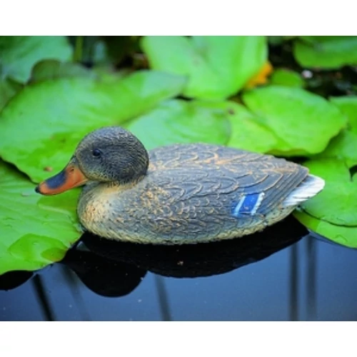 Vadkacsa nőstény 40cm Élethű műanyag dekorációs kellék kerti tavakba. Szépen kidolgozott, megtévesztően valósághű állatfigura. UV-álló, rugalmas, jó minőségű műanyagból. Szépen kidolgozott mintázat, természetes, élethű festés jellemzi. Nagyon szépen mutat a kertben, életet és színt visz a kerti tóba. Fagyálló kivitel, de a hosszabb élettartam és mutatós kivitel, élénk színek megtartása érdekében javasoljuk kivenni a tóból a téli hónapokra.