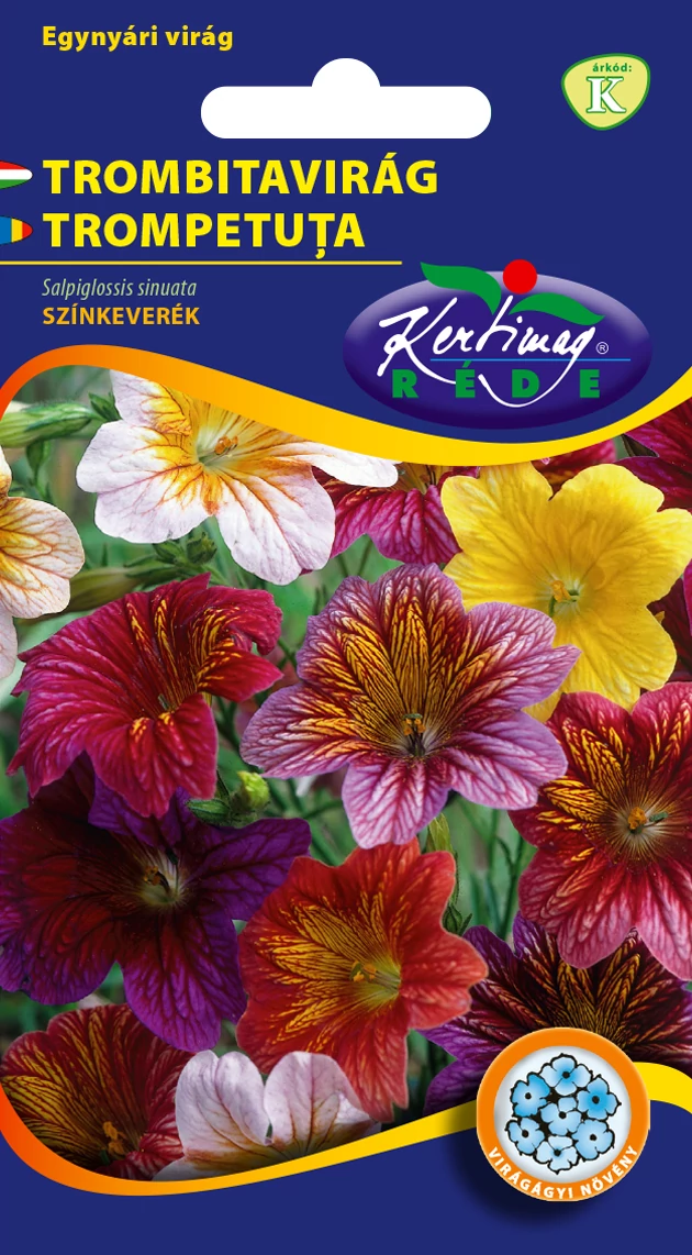 Trombitavirág - Színkeverék - Rédei Kertimag Nem csávázott vetőmag. A hajtások végén nagyméretű, színes virágai fürtökben díszlenek. A virágok általában 5 szirmúak, sötétebb, vagy világosabb erezettel, csíkokkal, foltokkal tarkázottak. Házikertben inkább áprilisban vessük virágágyba, 30cm-es sortávolságot hagyva. Meleg, napos fekvést, tápdús, laza kerti talajt igényel. A pangó vizet nem szereti. A növény magassága 40-60 cm.
