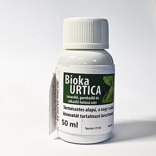 Bioka URTICA csalánkivonat 50ml - Rovarölő, gombaölő hatás Természetes alapú, a nagy csalán (Urtica dioica) vizes kivonata. Haszonnövény- és dísznövénykultúrákban tetvek, gombás betegségek és atkák ellen is nagon jó hatékonyságú, természetes anyag. Természetes módon aktiválja az ellenállóképességet a kórokozó gombák és baktériumok ellen. 7–14 naponta ismételhetjük. Valamennyi növénykultúrában alkalmazható.