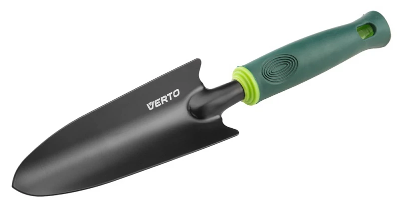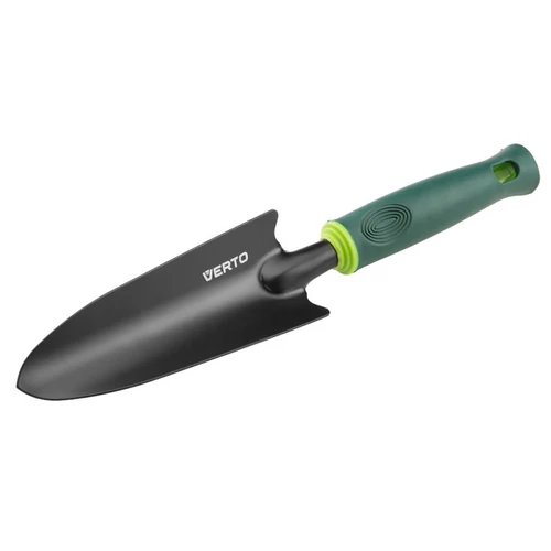 Verto mini kerti ásó 350 mm hosszú. Praktikus kézi szerszám a kerti munkák során. Deformálódásnak ellenálló, anyaga erős acél. Az ergonómikus formakialakítású, gumírozott nyél jól fekszik a kézben, nem csúszik ki, emelve a munkavégzés kényelmét.
