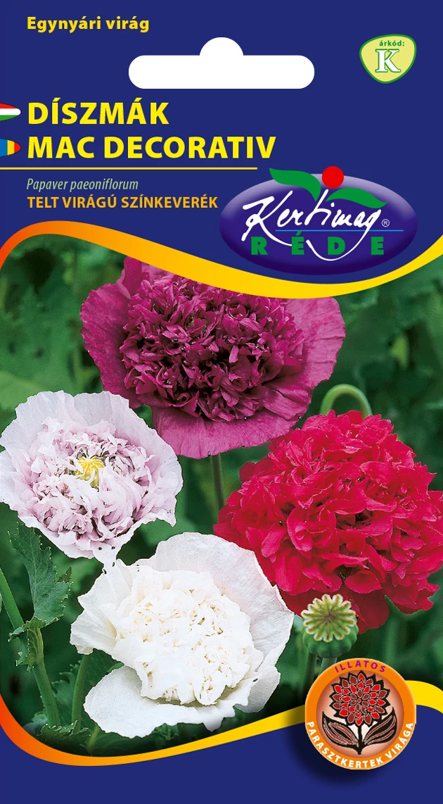 Díszmák - Teltvirágú Színkeverék - Rédei Kertimag Nem igényel különleges gondozást, szárazságtűrő és jól viseli a gyengébb minőségű talajokat is. Kombinálható más vadvirágokkal, például búzavirággal vagy margarétával, így természetes, mezőgazdasági tájképet hozhatunk létre. Virágai pillangókat és méheket csalogatnak, hozzájárulva a kert ökoszisztémájához. Ez a gyorsan csírázó, napfénykedvelő növény kiváló választás természetes hatású kertekbe és virágos rétek kialakításához. Magját kora tavasszal, március-áprilisban kell elvetni jól előkészített, laza talajba, napos helyre. 0,2 cm mályen. A csomag 0,25g vetőmagot tartalmaz. Elsősorban virágágyásba ajánljuk, de vázában, tavaszi csokorban vágott virágnak is nagyon mutatós. Talaj iránt nem túl igényes. Világos, napos helyre ültessük! A növény virágja sötét-, világos rózsaszín, vagy piros. Magassága kb. 60 cm. Vetőmagigény: 10m2-re 2g. A tasak kb. 600 szem vetőmagot tartalmaz.