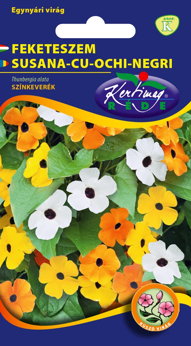Kúszó Szárnyas Feketeszem - Rédei Kertimag Nem csávázott vetőmag. 0,5g. Kúszó Szárnyas Feketeszem (Thunbergia alata) Egynyári kúszó virágzó. Jól felhasználható kerítések befuttatására, erkélyek, teraszok, falak takarására. kerti hajnalka színkeverék. Akár 2-3 m magasra is felfuthat.
