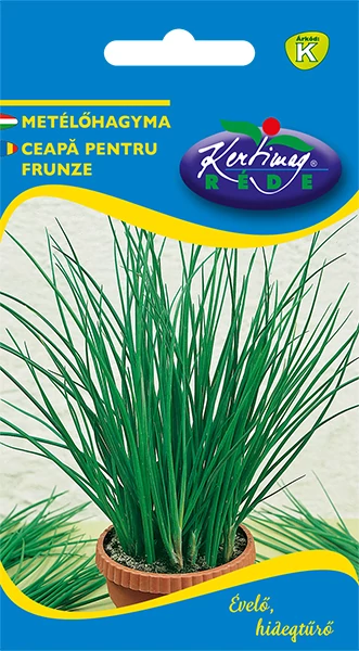 Metélőhagyma Évelő, szép virágú növény. Díszítésre, ízesítésre használjuk. Hidegtűrő, termesztő edényben hajtatva jól értékesíthető, levele egész évben fogyasztható. Balkonládában, cserépben is nevelhető. A tasak kb. 1700-1800 szem vetőmagot tartalmaz. Intenzíven sarjadó, évelő növény, levelei egész télen át folyamatosan szedhetőek. Hazánkban teljesen télálló, fényigénye alacsony, félárnyékban is termeszthető.