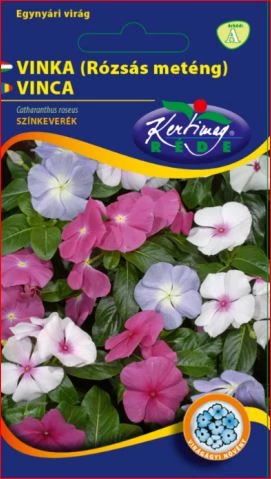 VINKA - Rózsás meténg - Színkeverék - Rédei Kertimag Egy igazán szép és változatos virágkeverék, amely színes és életteli megjelenést biztosít a kertednek. A meténg (vinca) virágai általában rózsaszín, lila és fehér árnyalatokban pompáznak, így remekül feldobják a virágágyásokat és a balkonládákat. A növények könnyen nevelhetők, és jól bírják a nyári hőséget is. A meténgek alacsony növésűek, ezért ideálisak talajtakaróként is, hiszen szépen befedik a talajt, miközben csodás virágokkal díszítik azt. A színkeverék különféle árnyalatokat kínál, így mindenki megtalálja a számára legkedvesebb változatot. Ezek a növények nemcsak szép látványt nyújtanak, de a gondozásuk is viszonylag egyszerű, így akár kezdő kertészek is bátran próbálkozhatnak velük.