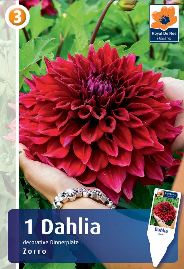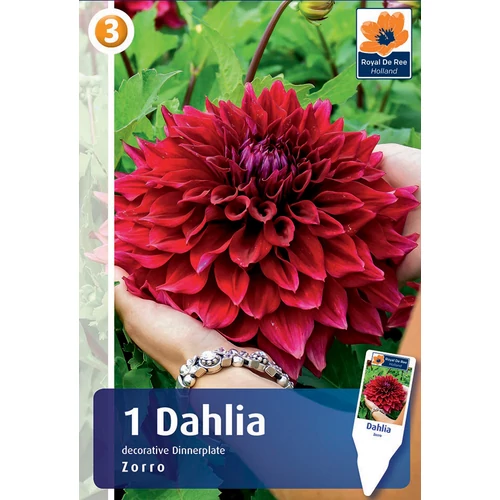 Óriásvirágú dália gumó Zorro Dinnerplate - De Ree Ez a 90 cm magasra növő, mutatós nagyvirágú, hosszú, erős szálú dália kiválóan alkalmas vágott virágnak. Virágszára az egy métert is elérheti. Rendszeresen vágva vagy az elnyílott virágokat eltávolítva új és új virágszárakat fejleszt, így júliustól a fagyokig folyamatosan virágzik. A tavaszi fagyok elmúltával, április közepétől ültethető a kert naposabb részébe. Az igazán gazdag virágzáshoz rendszeres, bőséges víz- és tápanyagellátást igényel. Nem télálló növény, fagymentes helyen teleltesd!