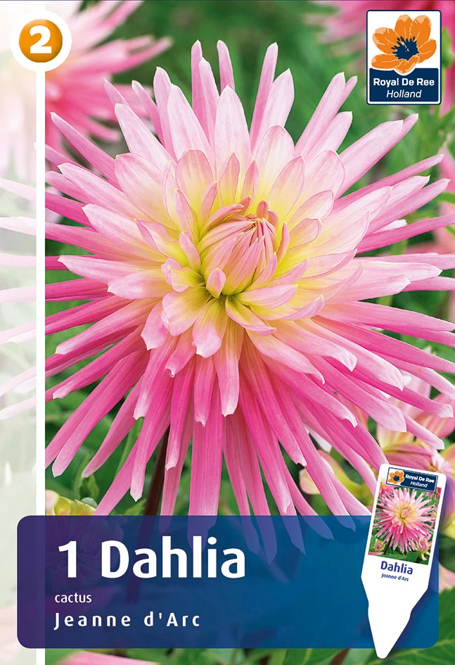Kaktusz dália gumó Jeanne d'Arc - De Ree Ez a 120 cm magasra növő, mutatós nagyvirágú, hosszú, erős szálú dália kiválóan alkalmas vágott virágnak. Rendszeresen vágva vagy az elnyílott virágokat eltávolítva új és új virágszárakat fejleszt, így júliustól a fagyokig folyamatosan virágzik. A tavaszi fagyok elmúltával, április közepétől ültethető a kert naposabb részébe. Az igazán gazdag virágzáshoz rendszeres, bőséges víz- és tápanyagellátást igényel. Nem télálló növény, fagymentes helyen teleltesd!