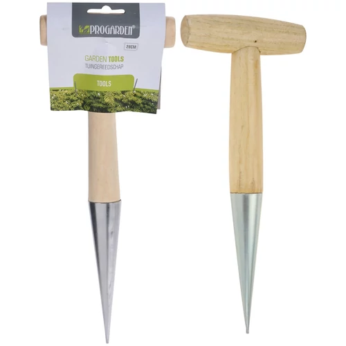 PROGARDEN Ültetőfa fém heggyel Duggató-, vagy ültetőfa kényelmes, T-markolattal a könnyebb munkavégzésért. Kisebb virághagymák, dughagyma gyors, egyszerű elültetéséhez. A fém hegyű, fa fogóval ellátott, hagyma dugványozó ültetőfa egy rendkívül praktikus szerszám, amely megkönnyíti a hagymák ültetését. Különleges kialakítása lehetővé teszi, hogy a fém hegy könnyedén beszúrja magát a talajba, miközben a fa fogó biztos és kényelmes kezelést biztosít. Az ergonomikus tervezésnek köszönhetően a felhasználó könnyen irányíthatja a szerszámot, így a dugványok precízen és hatékonyan helyezhetők el a megfelelő mélységbe. A fém hegy tartóssága és a fa fogó esztétikai értéke egyaránt hozzájárul ahhoz, hogy ez az ültetőfa ideális választás legyen a kertészek számára, legyenek akár kezdők, akár tapasztalt profik. A szerszám használata nemcsak megkönnyíti a hagyma dugványozást, hanem időt is spórol a kertészek számára, így gyorsabb és élvezetesebb lehet a kertgondozás folyamata.